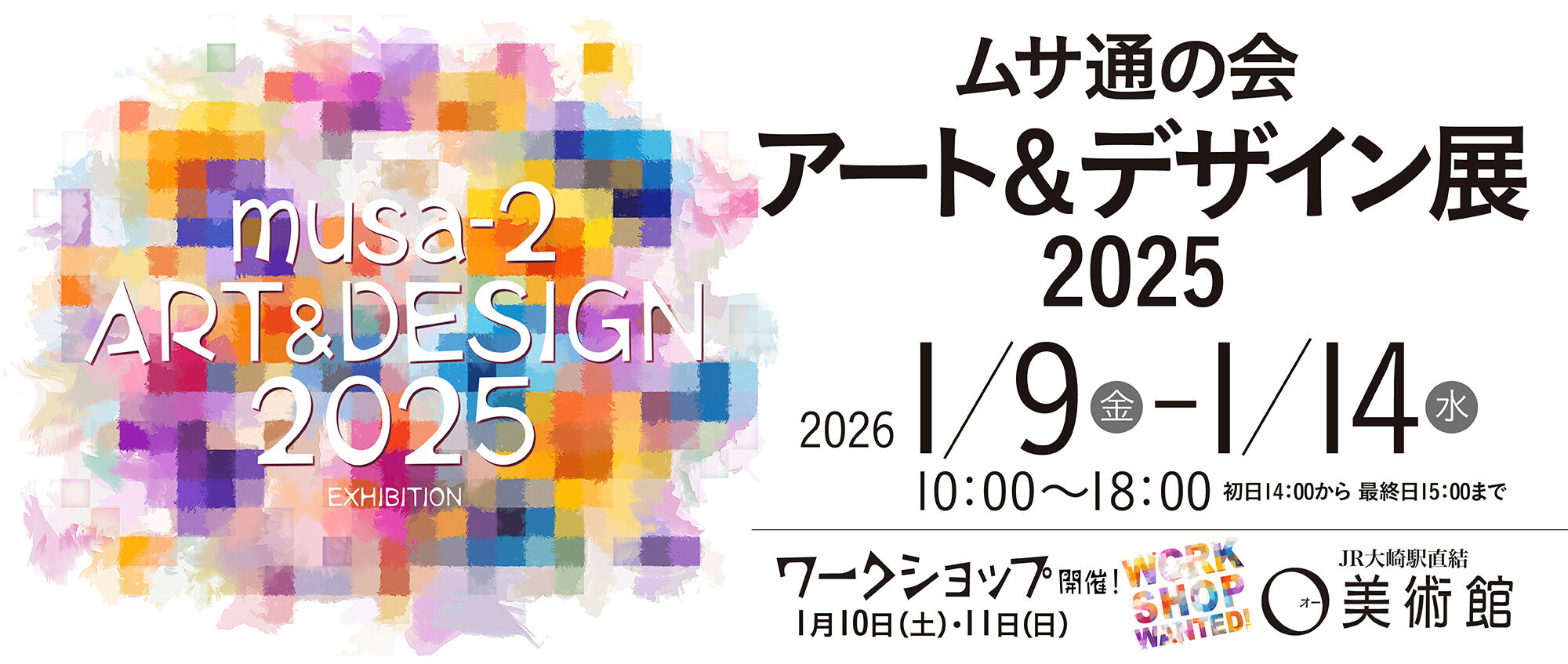 「musa2 アート&デザイン展2025」を2026年1月9日から14日まで開催!今回は、会場内でムサ通アーティストによるワークショップを初の試みとして実施します。皆さんのご参加をお待ちしています。